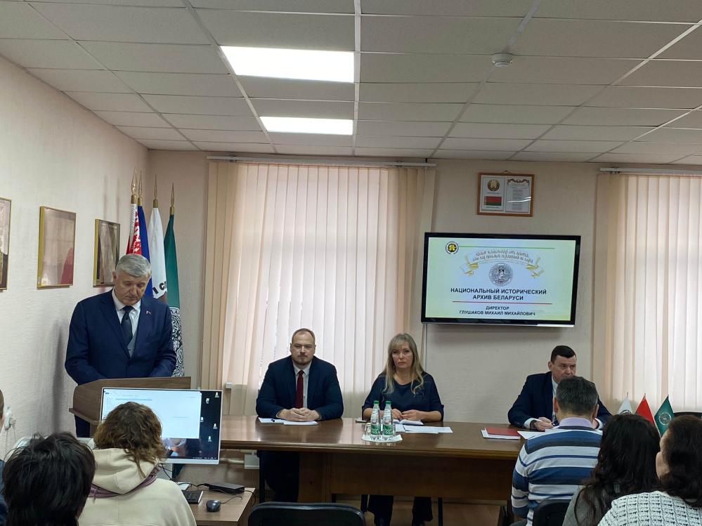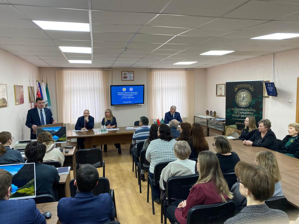 Дырэктар архіва Міхаіл Глушакоў падвёў вынікі работы па выкананні асноўных паказчыкаў дзейнасці ў галіне забеспячэння захаванасці дакументаў, іх выкарыстання, аблічбоўкі архіўных дакументаў, навукова-даследчай і публікацыйнай дзейнасці, стварэння і ўдасканалення навукова-даведачнага апарата, аўтаматызаваных архіўных тэхналогій і інфармацыйна-пошукавых сістэм.