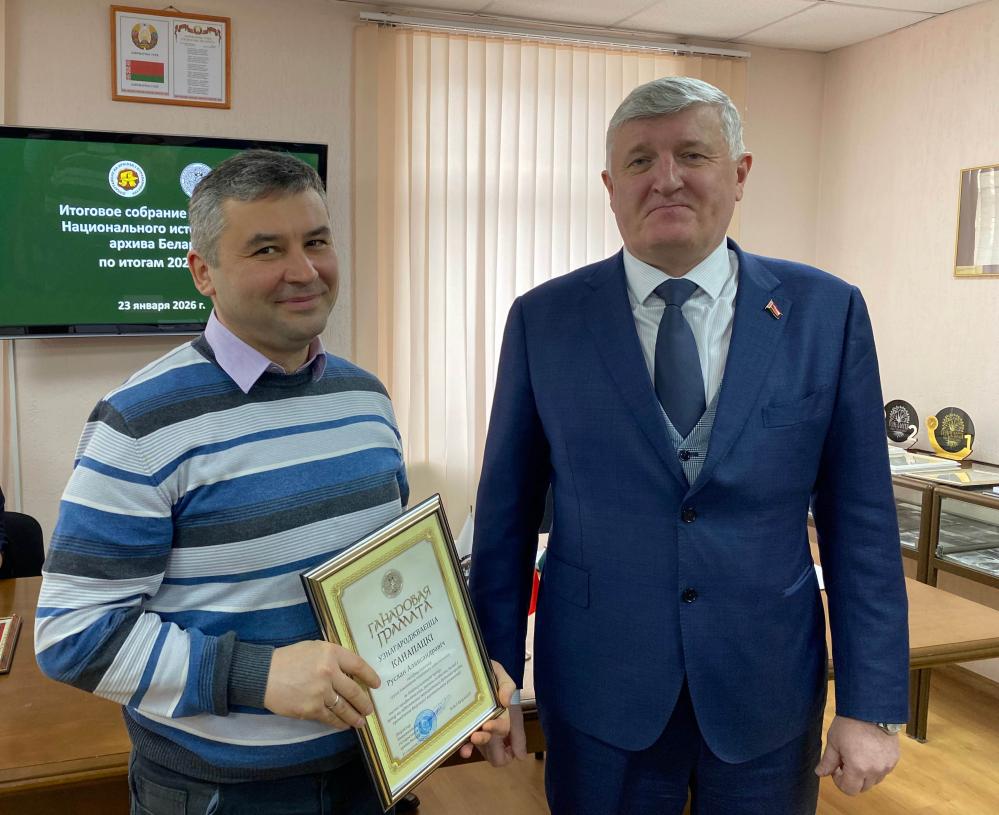 23 студзеня 2026 г. адбыўся выніковы сход калектыву дзяржаўнай установы «Нацыянальны гістарычны архіў Беларусі». На сходзе прысутнічаў дырэктар Дэпартамента па архівах і справаводству Міністэрства юстыцыі Рэспублікі Беларусь Алег Воінаў.