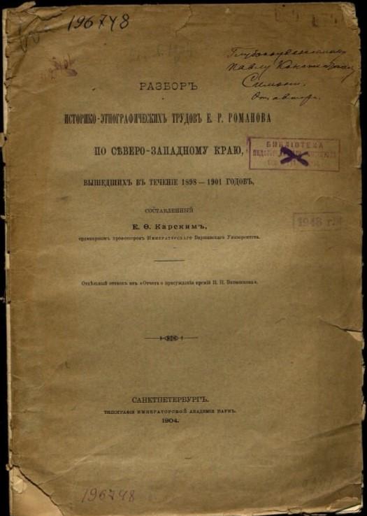 Жыццё і дзейнасць Е.Р. Раманава (1855-1922)