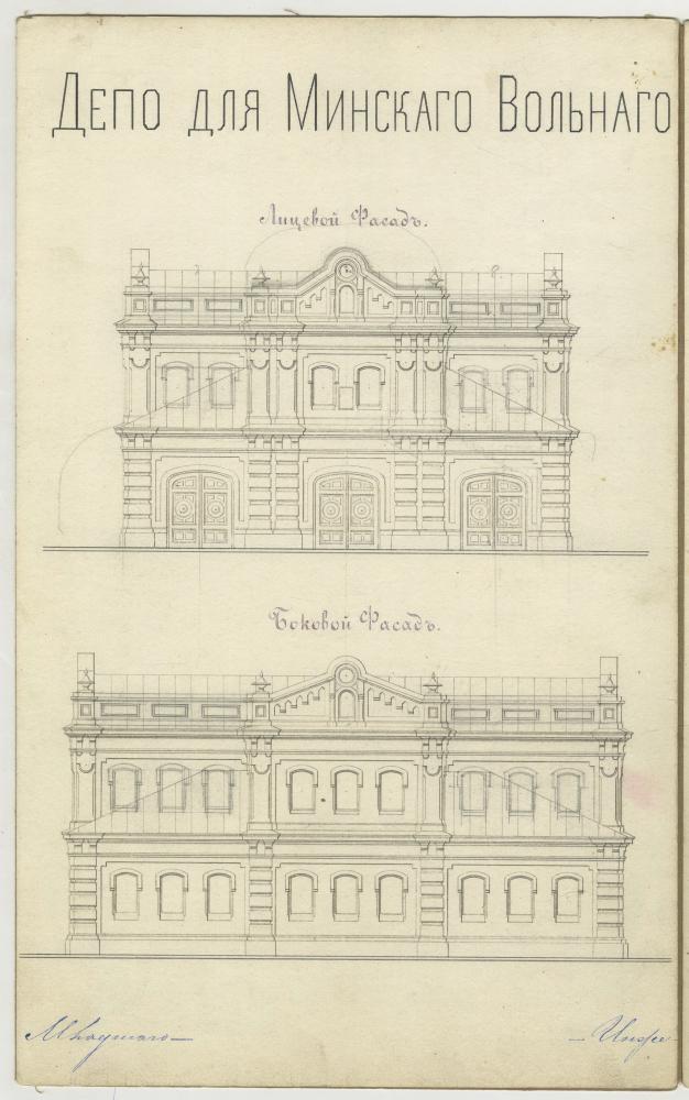 Праекты на пабудову і рэканструкцыю будынка дэпо Мінскага вольнага пажарнага таварыства на Раманаўскай вуліцы ў Мінску. Архітэктар І.Чалі-Сурыеў. Фрагмент.