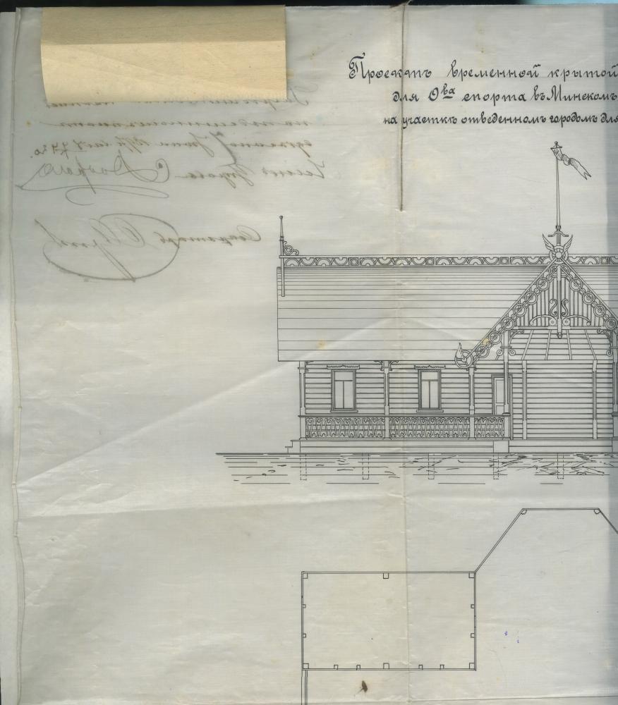 Праект на пабудову драўлянай платформы з павільёнам для Мінскага спартыўнага таварыства на стадыёне ў Мінскім гарадскім садзе. Фрагмент.