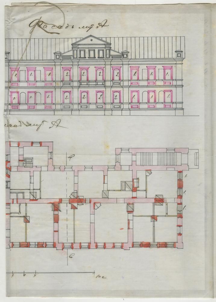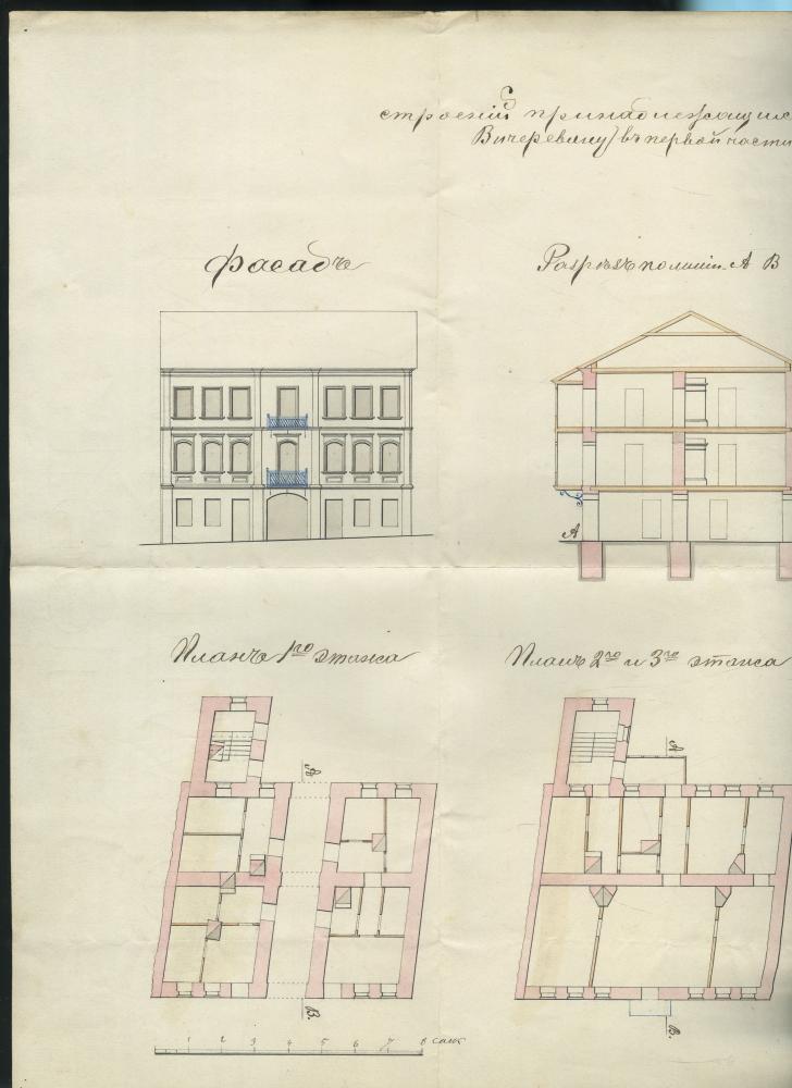 Праект на пабудову мураванага трохпавярховага жылога дома і двухпаврховага флігеля, а таксама гаспадарчых пабудоў Ц.Ліхтэрмана на рагу Маскоўскай і Яўрэйскай вуліц у Мінску. Фрагмент.